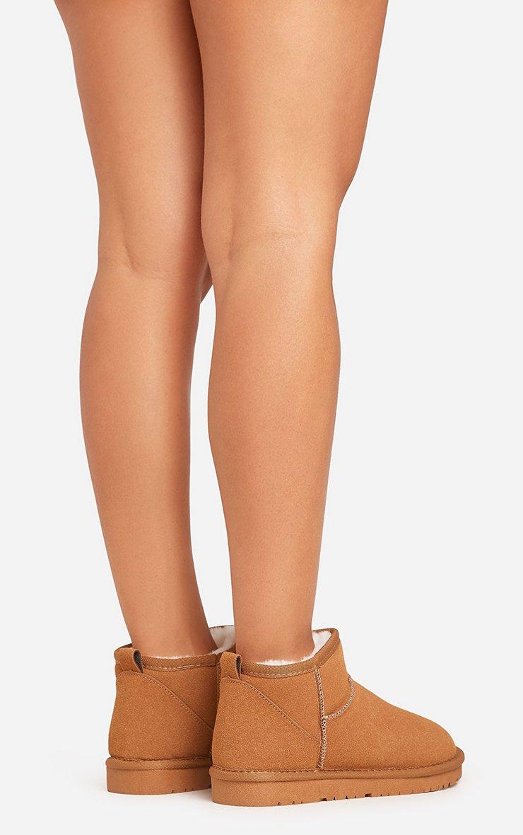 Ultra Mini Ankle Length Faux Fur Lining Boots In Chestnut Brown Faux Suede