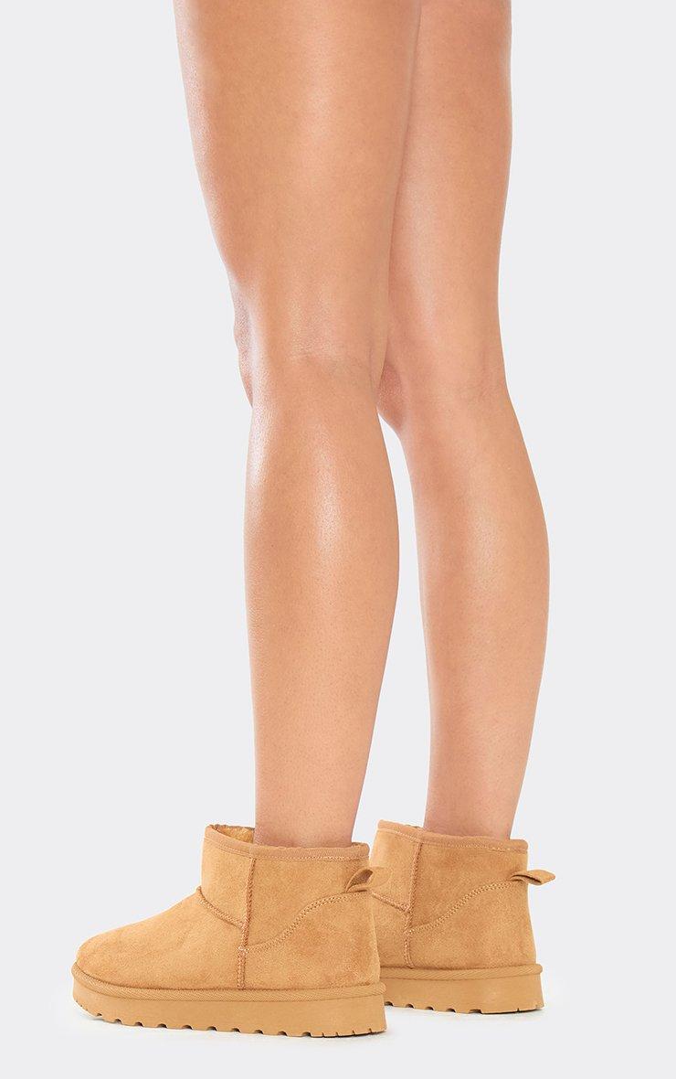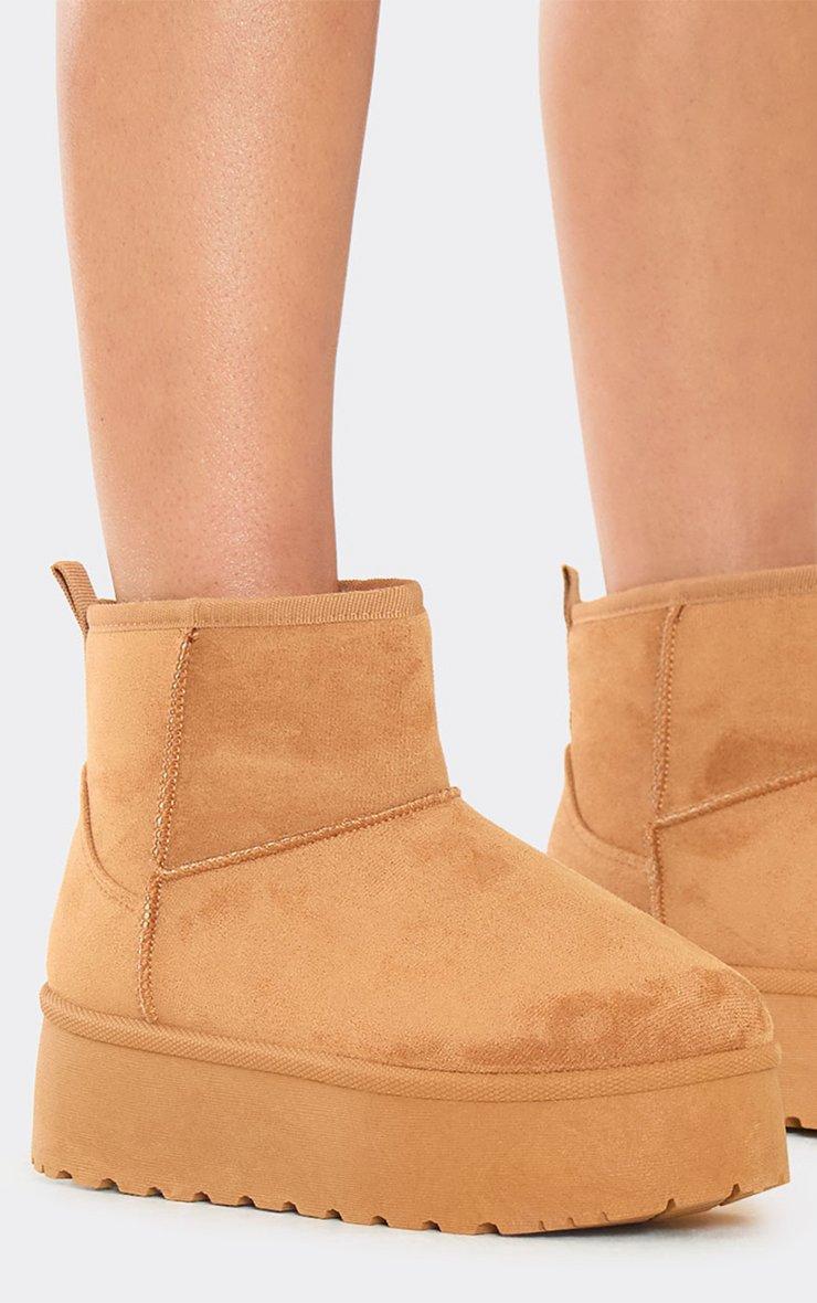 Pumpkin Platform Sole Faux Fur Lining Ultra Mini Ankle Boot In Chestnut Faux Suede