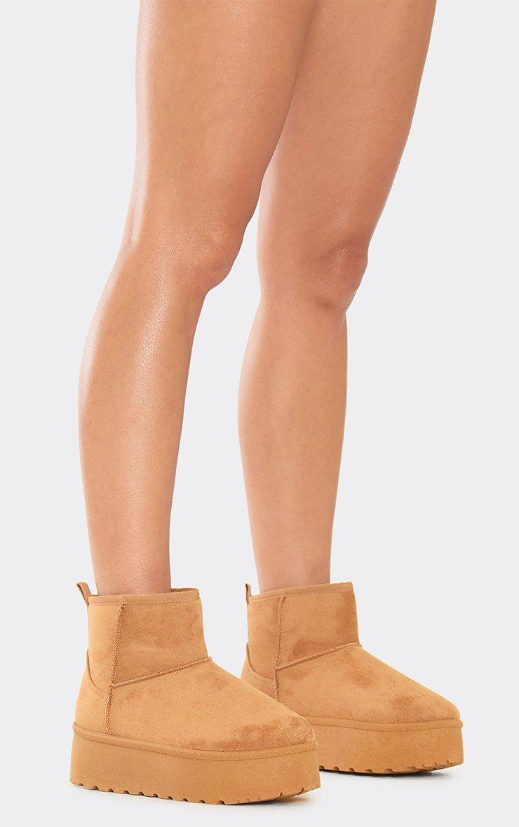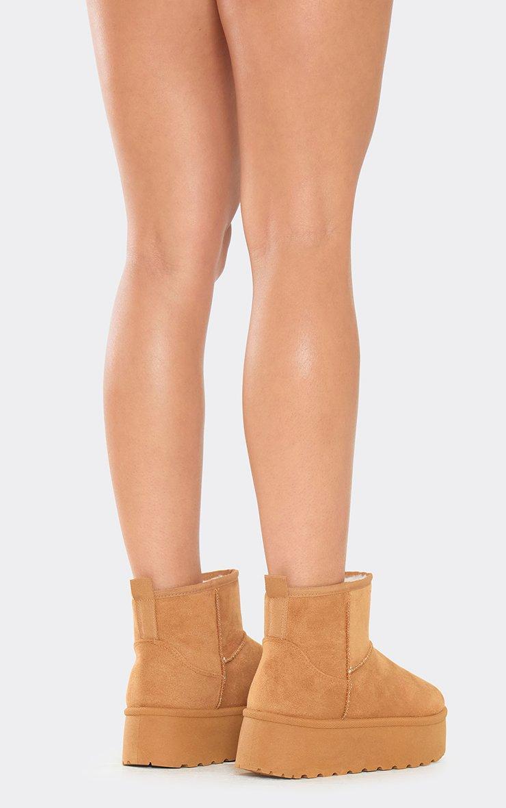 pumpkin platform sole faux fur lining ultra mini ankle boot in chestnut faux suede