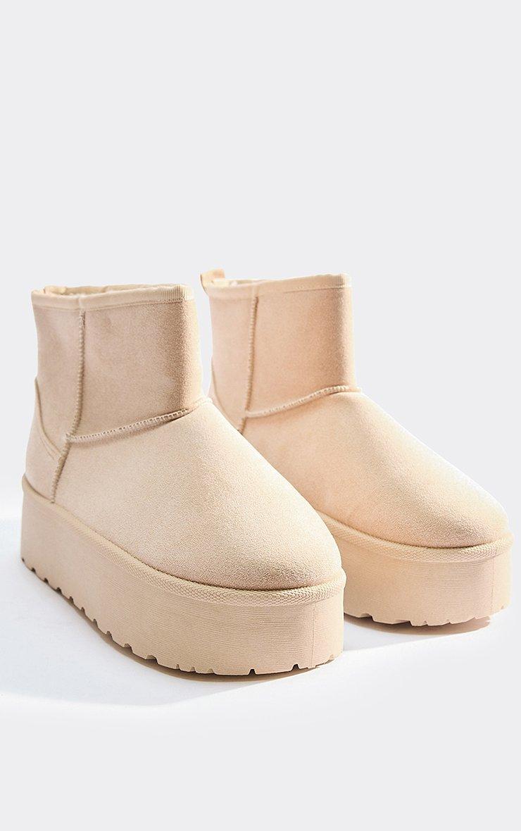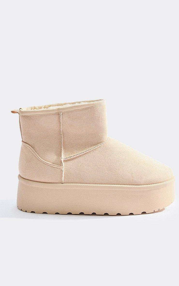 Pumpkin Platform Sole Faux Fur Lining Ultra Mini Ankle Boot In Beige Faux Suede