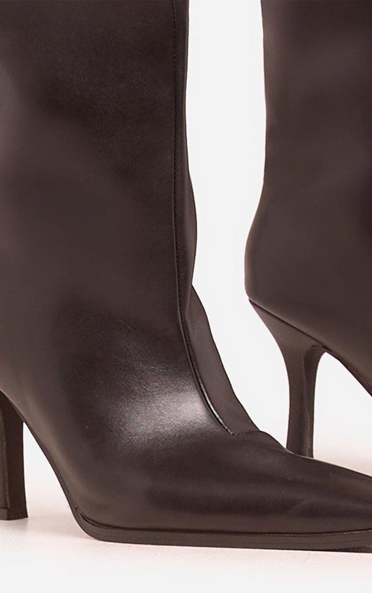 Floor-It Pointed Toe Knee High Heeled Boot In Black Faux Leather