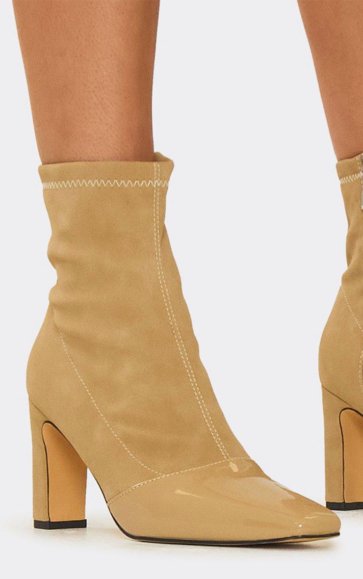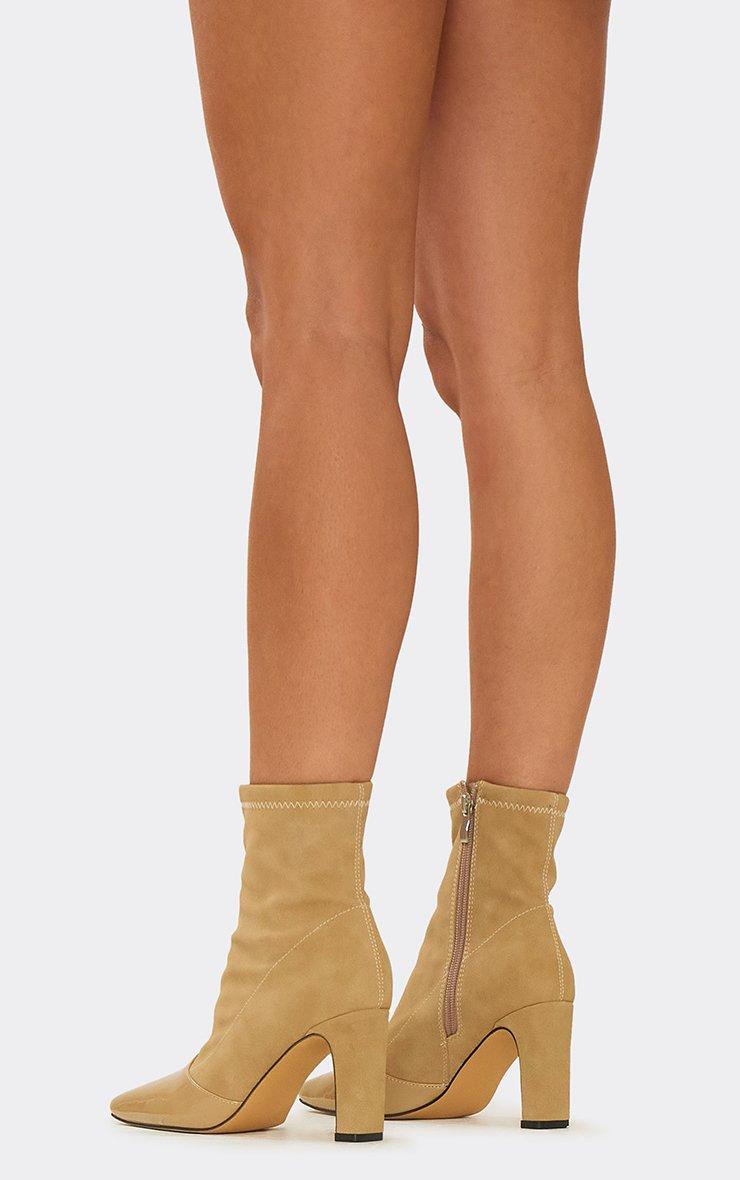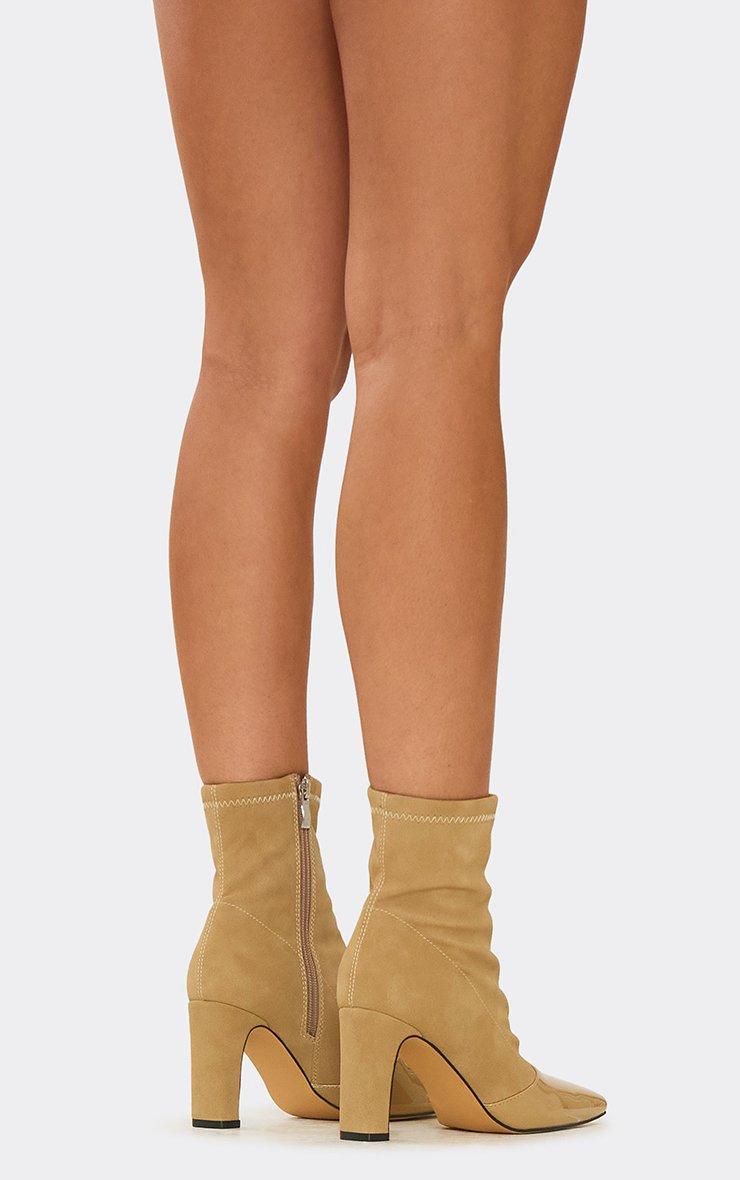 Stun Block Heel Knee High Boot In Beige Faux Suede