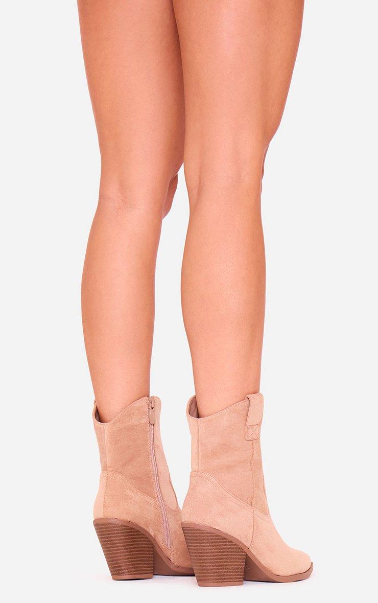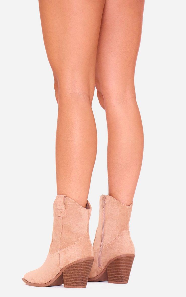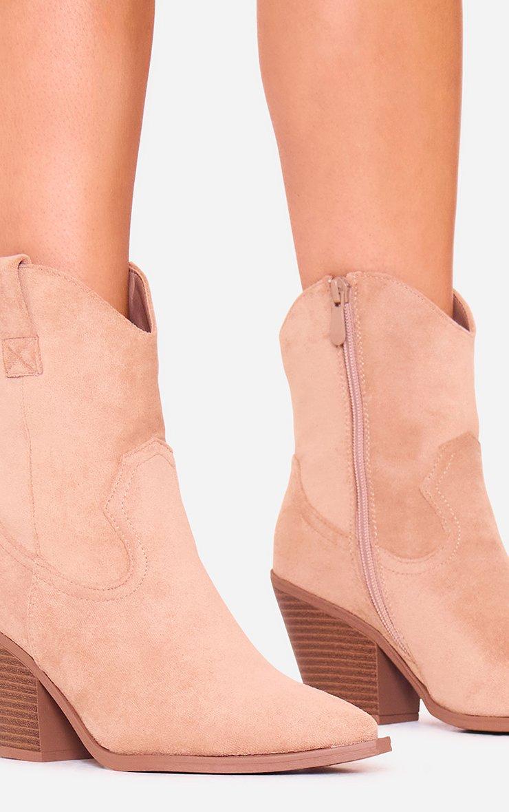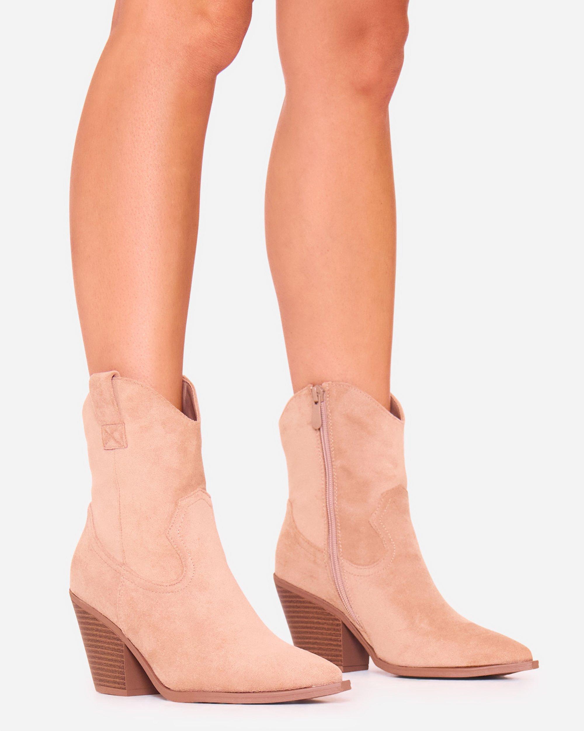 Toni Block Heel Pointed Toe Western Cowboy Ankle Boot In Taupe Faux Suede