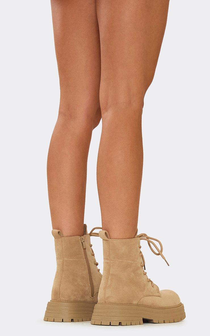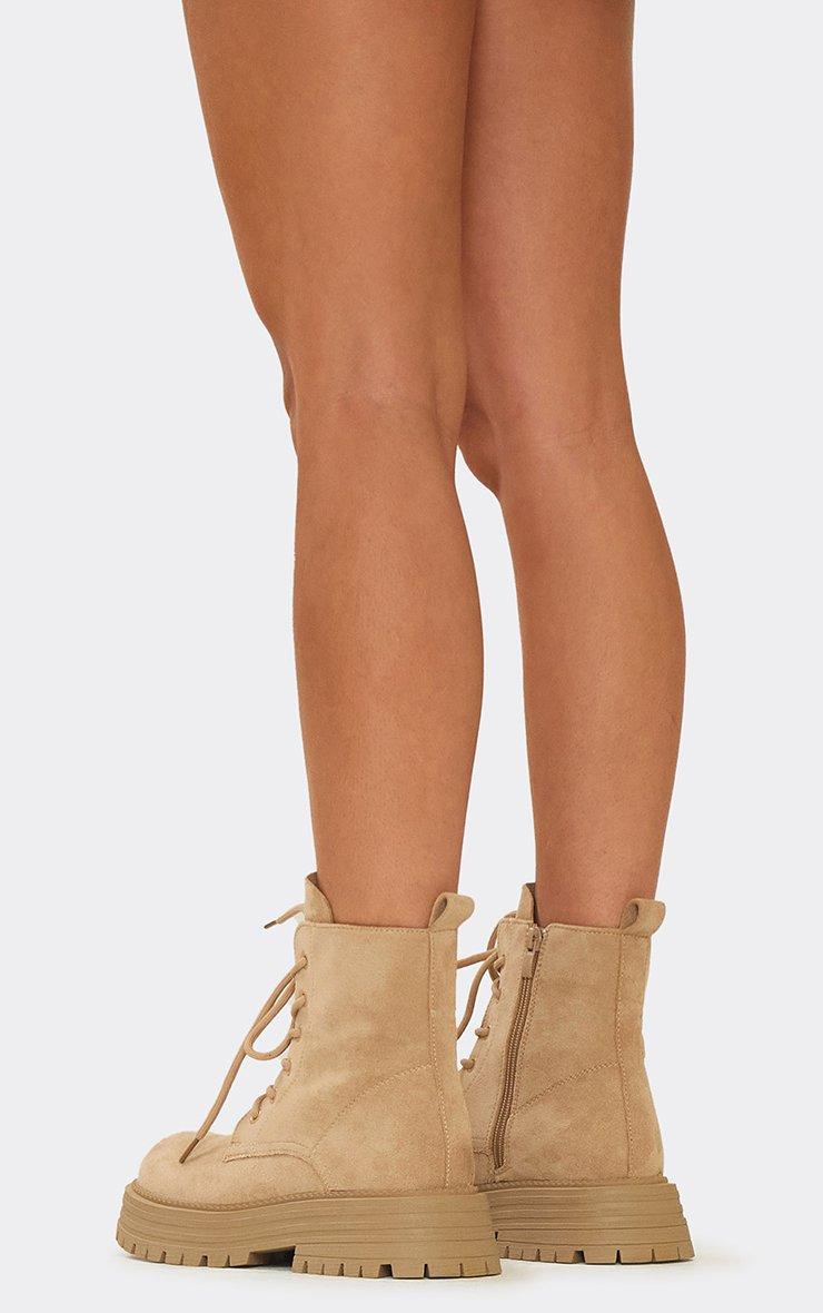 Algot Lace Up Chunky Sole Ankle Biker Boot In Black Tan Brown Suede