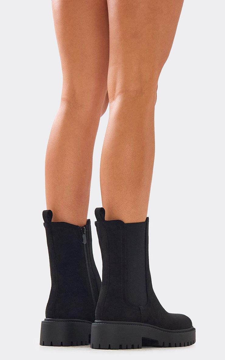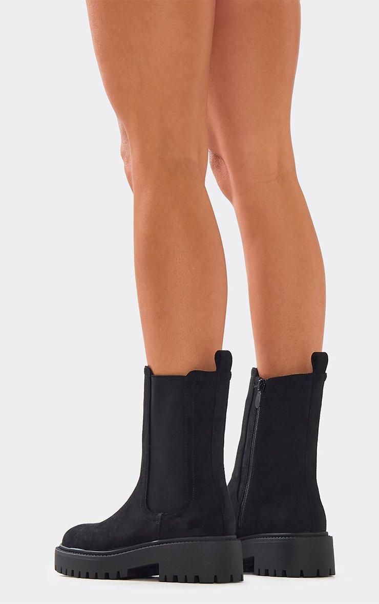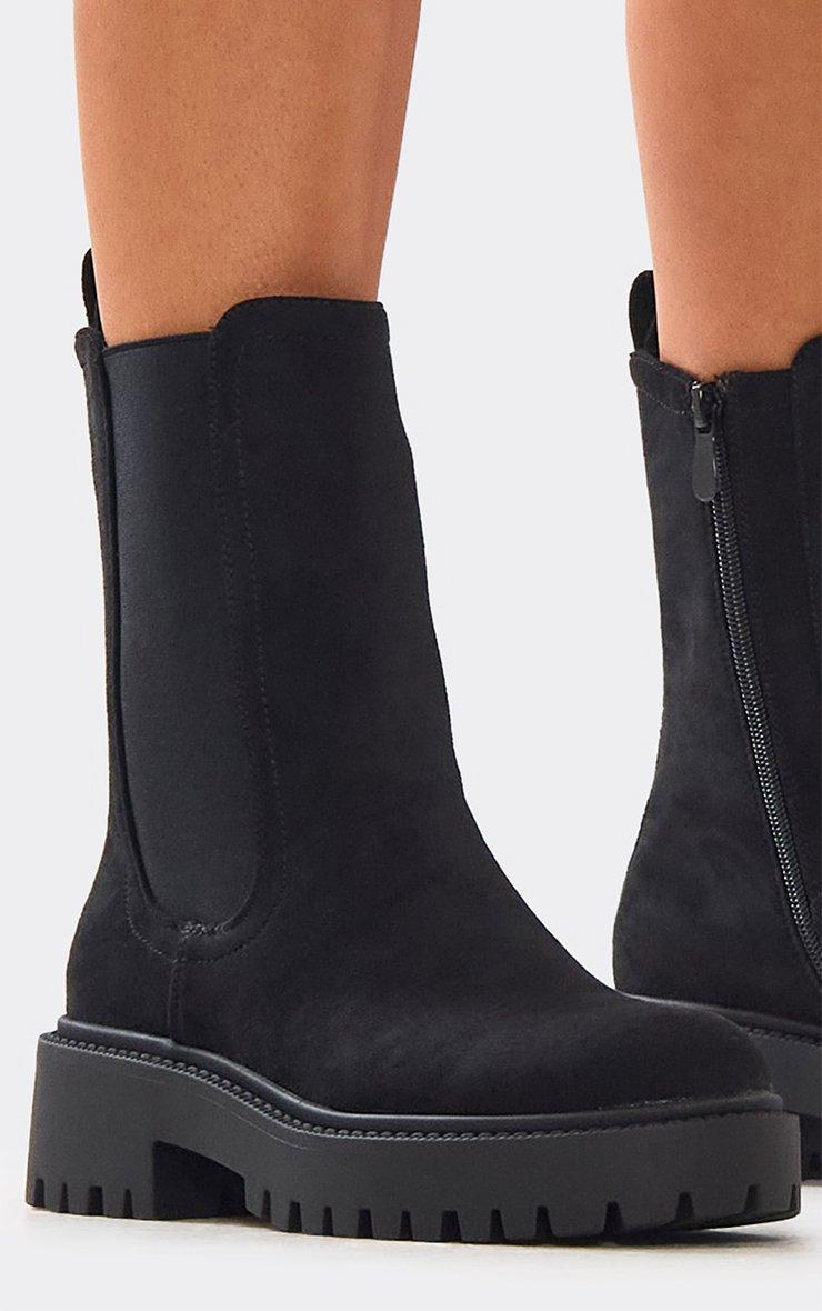 Sourz Chunky Sole Ankle Chelsea Boot In Black Faux Suede