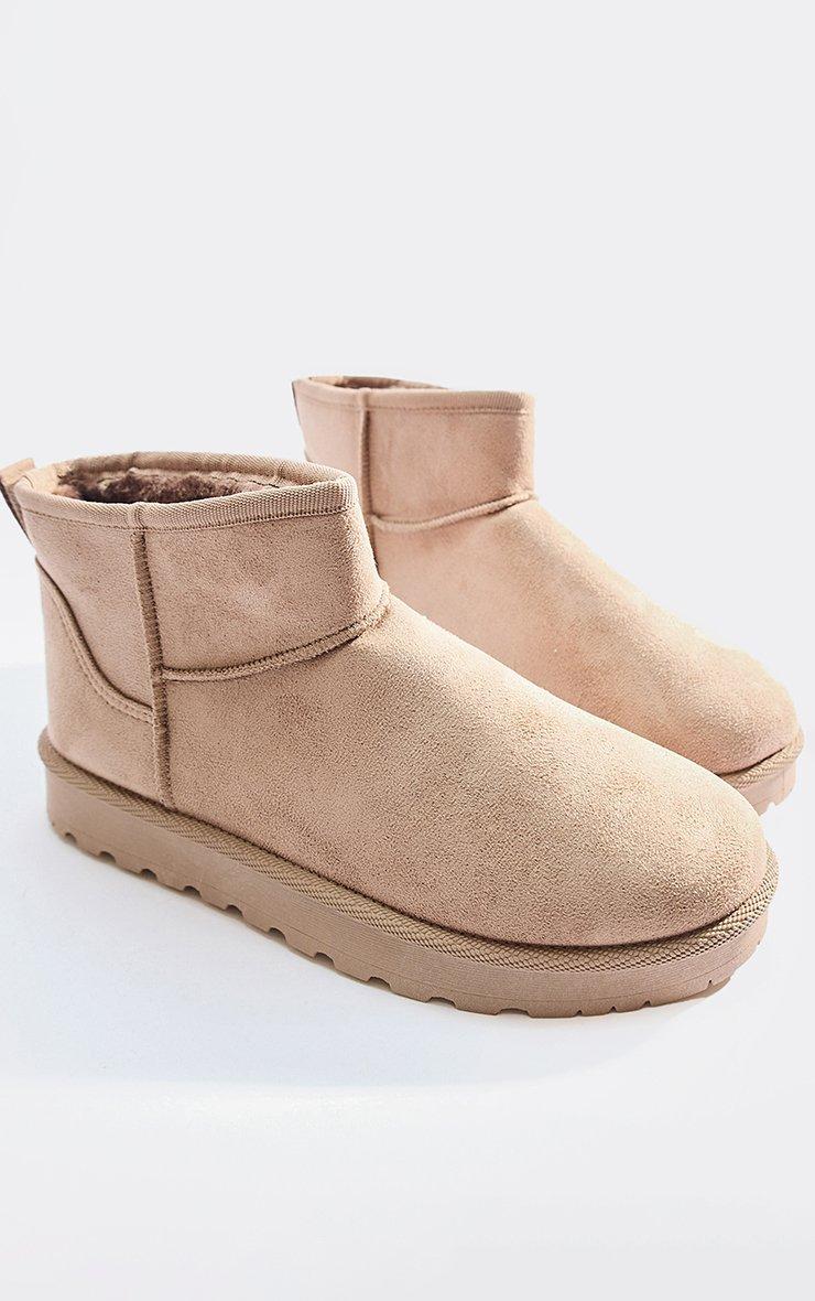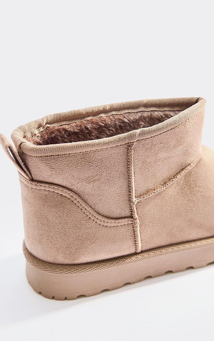 Cola Cola Faux Fur Lining Mini Ankle Boot In Taupe Faux Suede