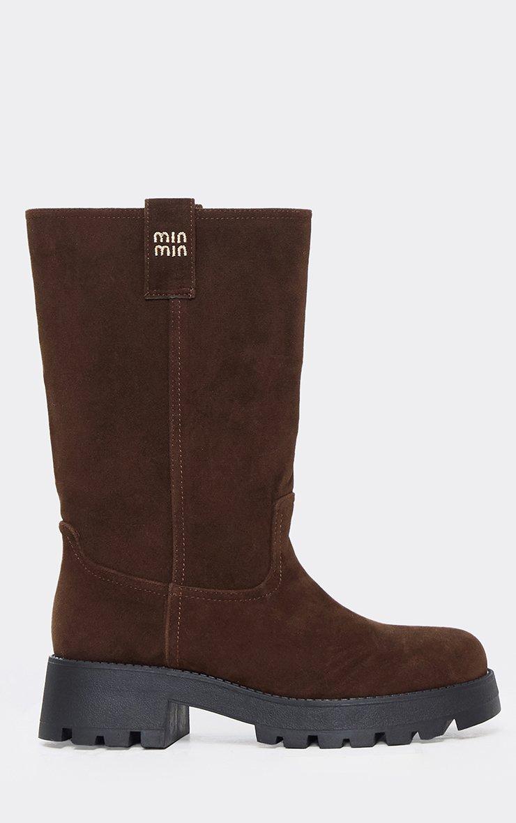 Charter Faux Fur Lining Mini Ankle Boot In Brown Faux Suede