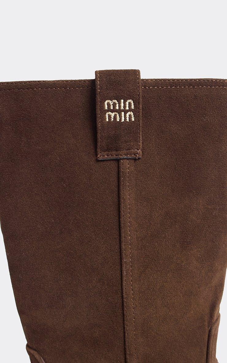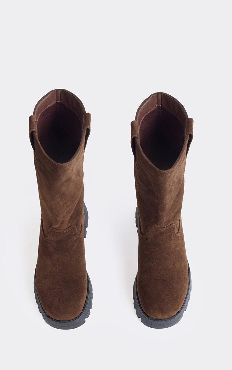 Cave Pointed Toe Slouched Detail Knee High Boot In Mocha Faux Suede