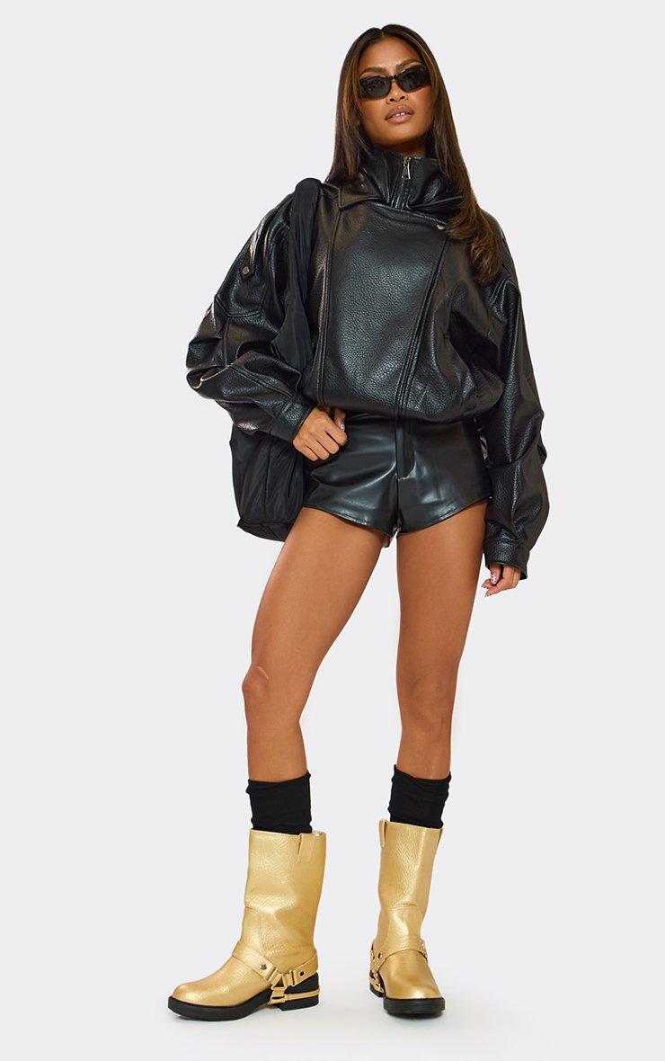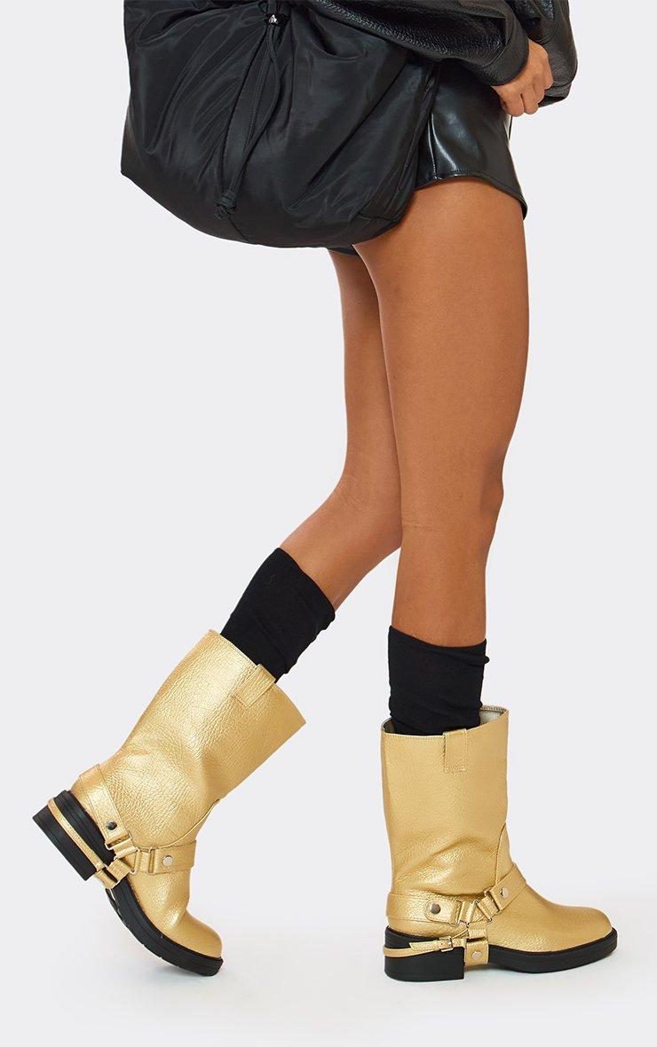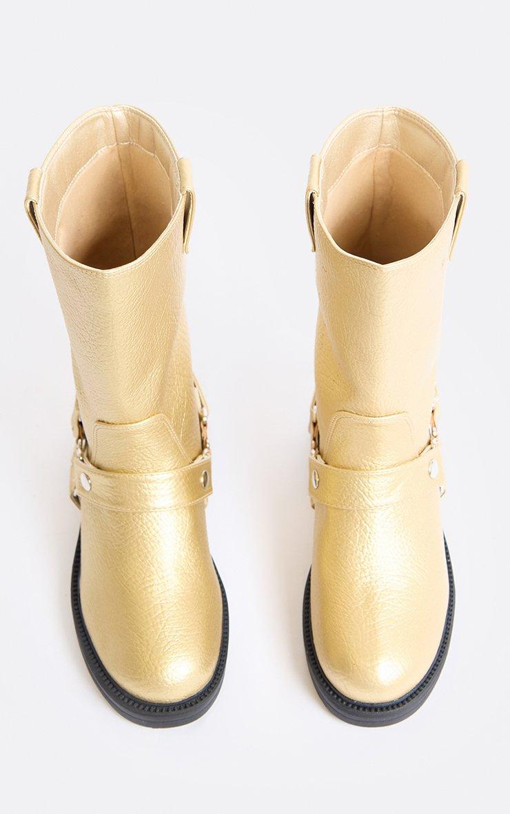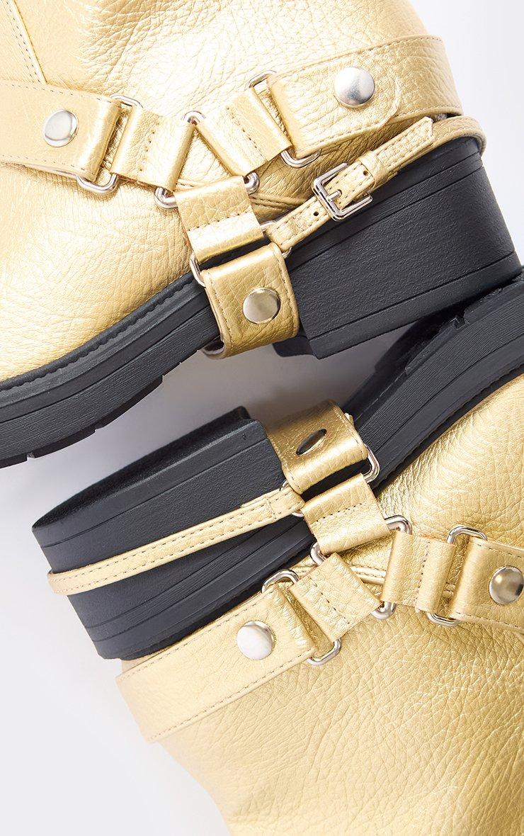 Locked In Side Buckle Detail Ankle Boot In Gold Faux Leather