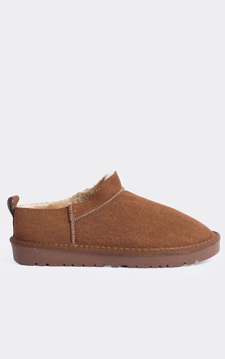 Cave Pointed Toe Slouched Detail Knee High Boot In Mocha Faux Suede