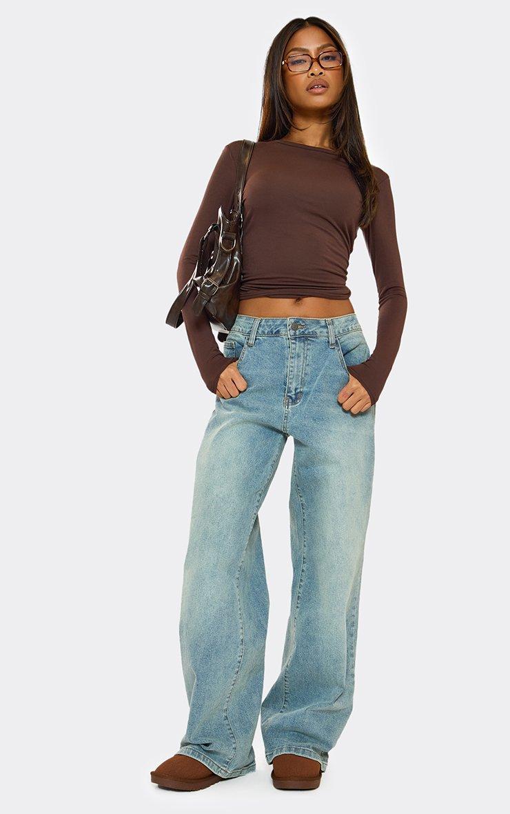Mona Buckle Detail Knee High Boot In Brown Faux Leather