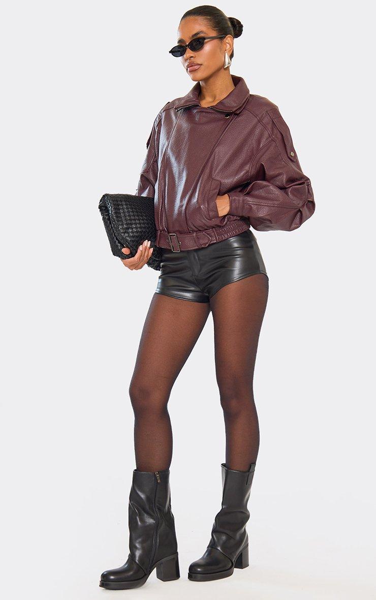 Crisp Buckle Detail Chunky Mid Calf Biker Boot In Black Faux Leather