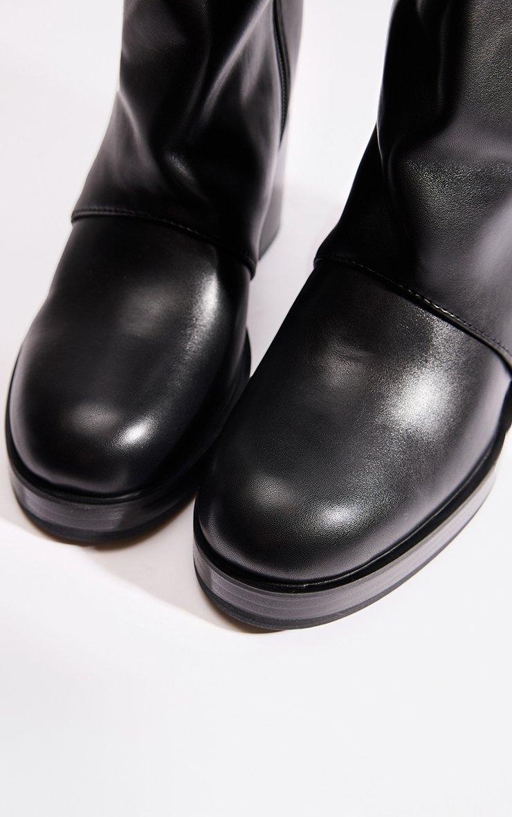 Mona Buckle Detail Knee High Boot In Black Faux Leather
