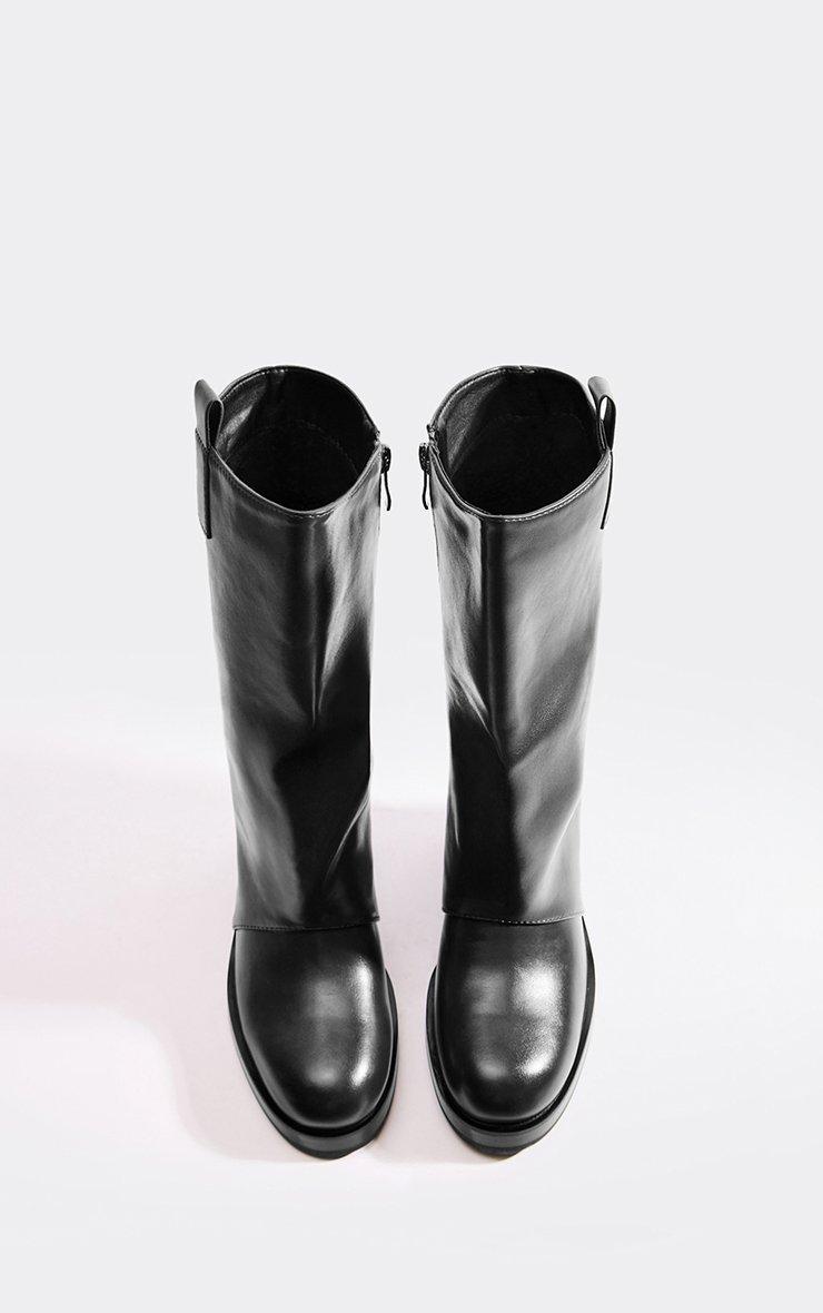Caesar Chunky Block Heel Knee High Long Boot In Black Faux Leather