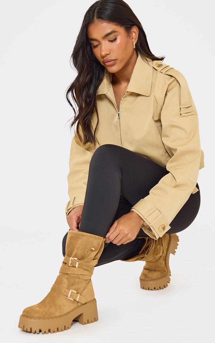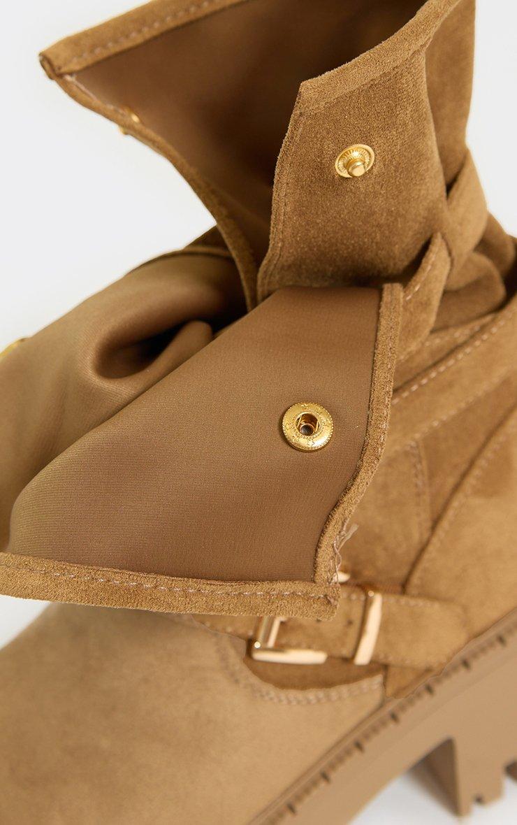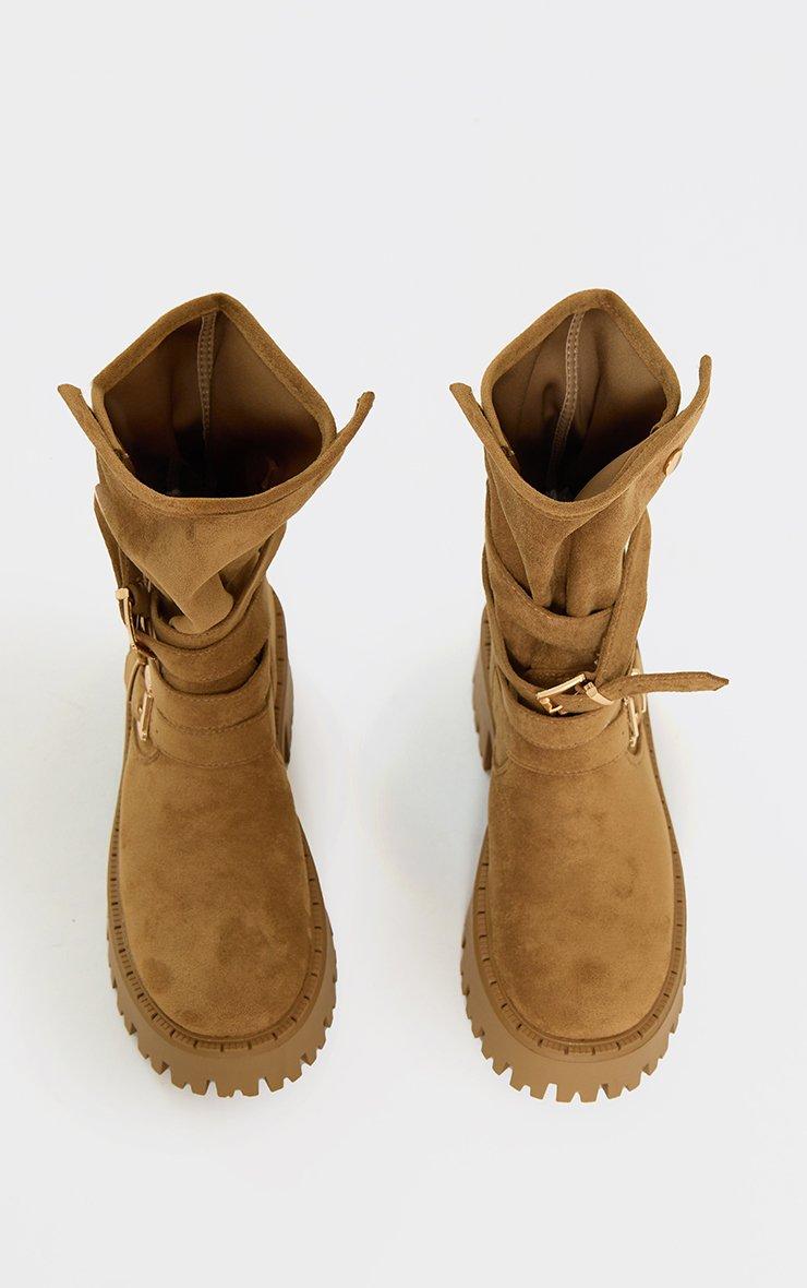 Claim Wrap Around Strap Chunky Sole Ankle Biker Boot In Brown Faux Suede