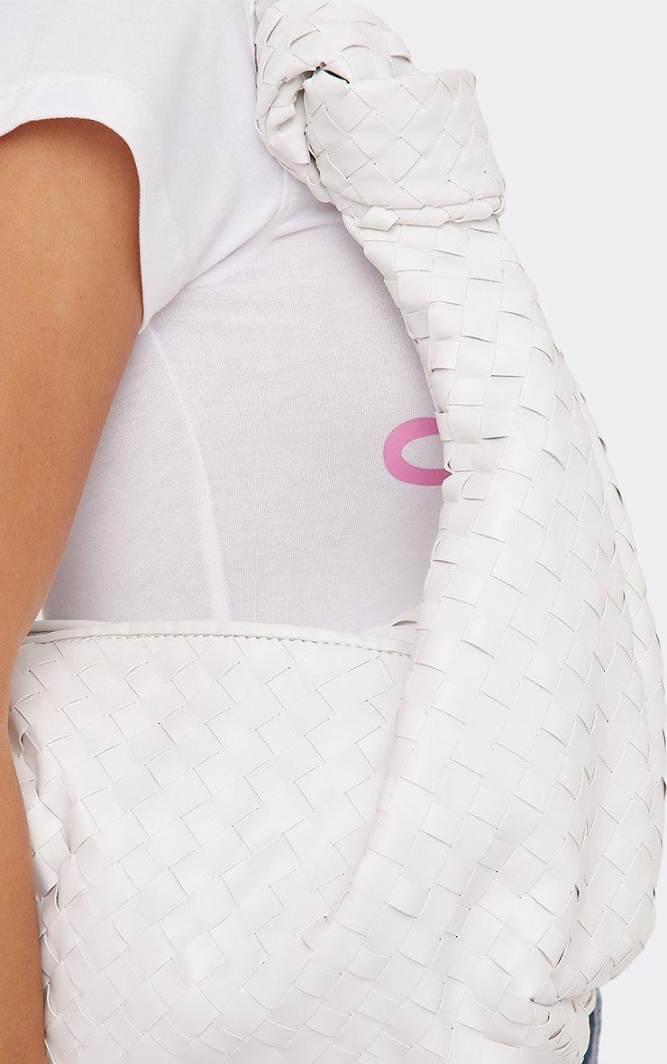Loreen Woven Knotted Strap Detail Oversized Shoulder Bag In White Faux Leather