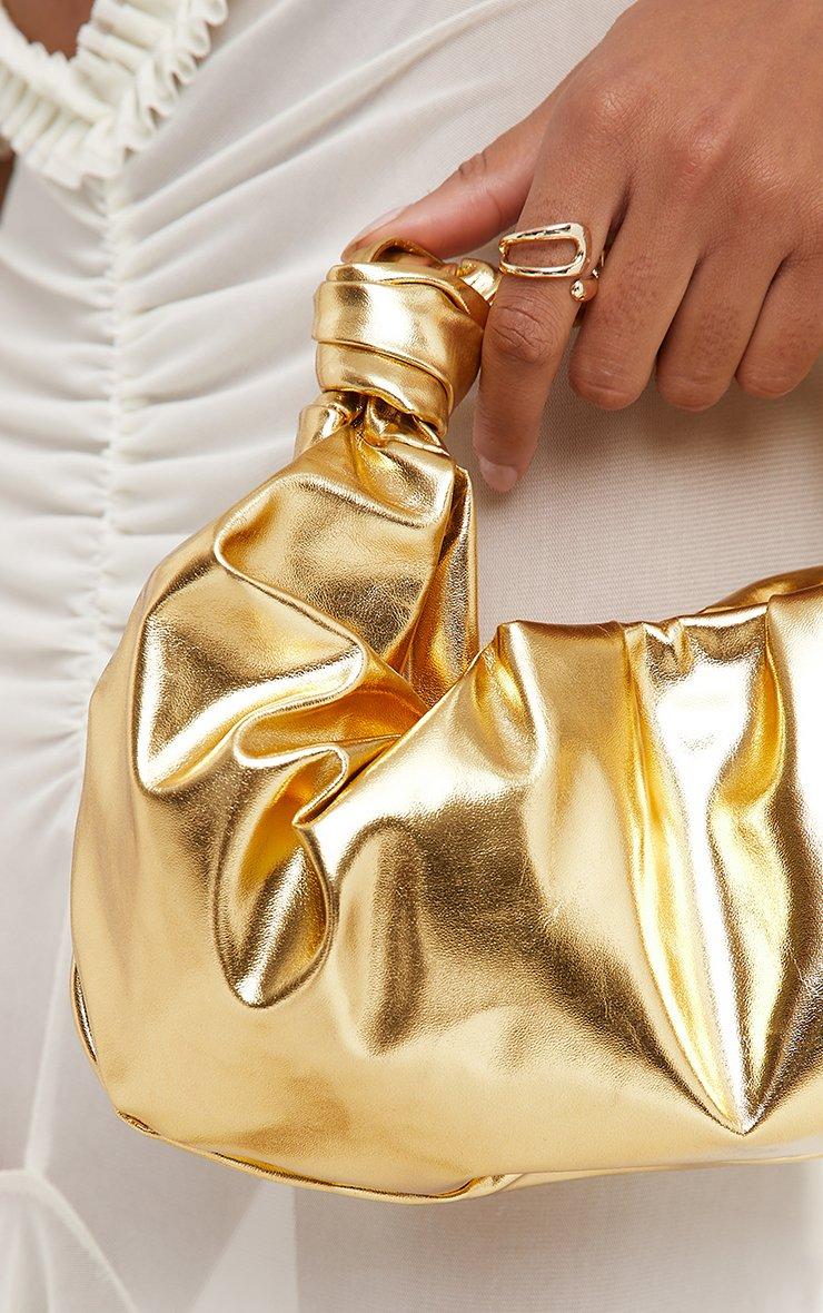 evelyn knotted strap ruched detail grab bag in gold faux leather