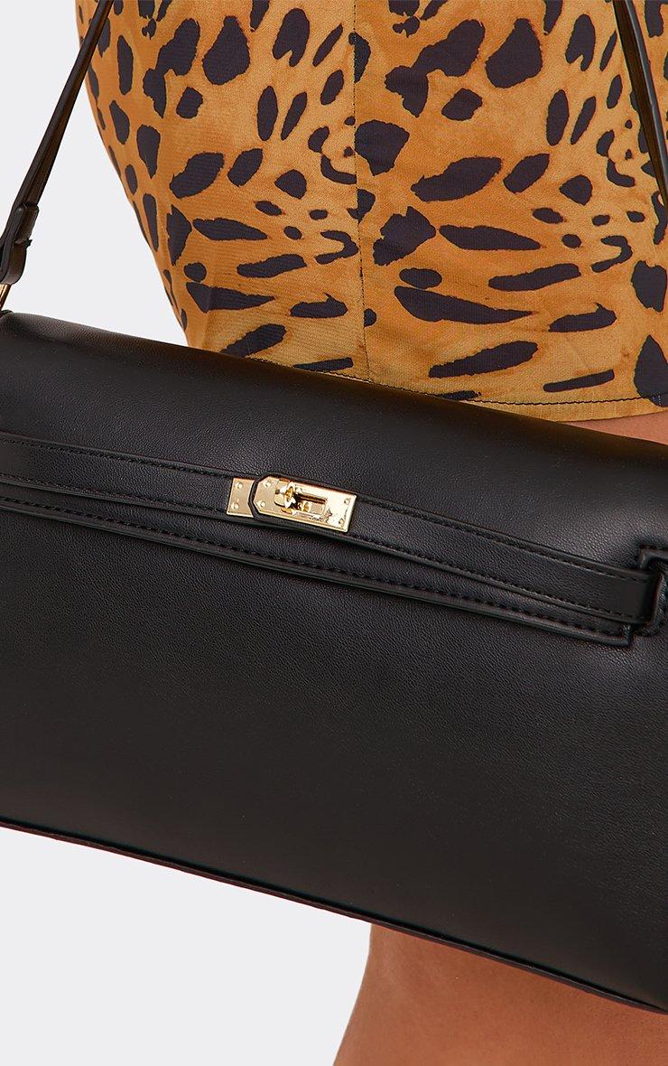 Rosi Lock Detail Rectangle Shaped Shoulder Tote Bag In Black Faux Leather