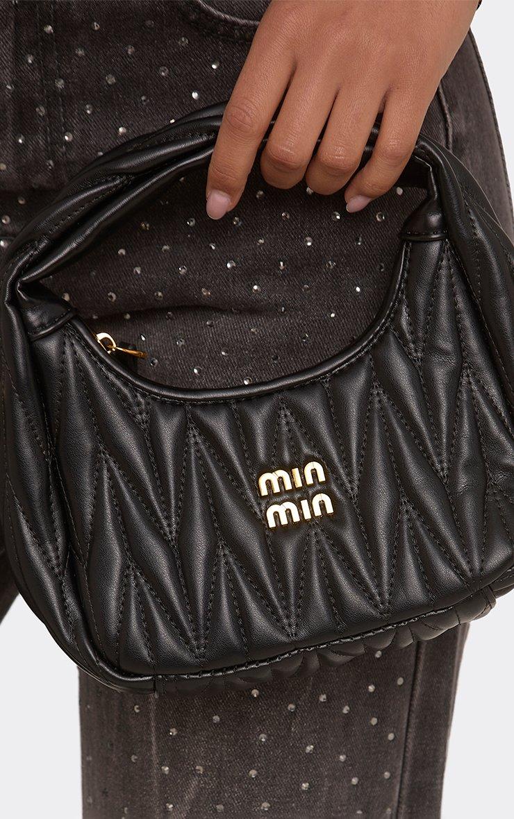 sierra quilted logo detail shaped grab bag in black faux leather