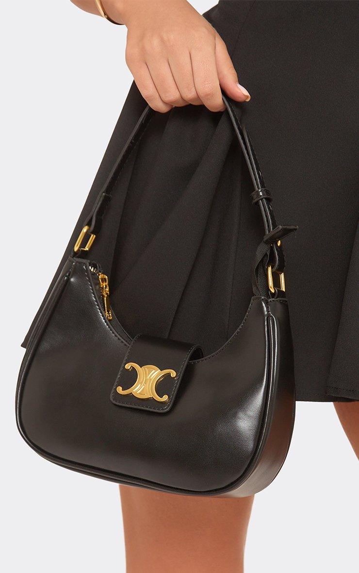 Issues Padlock Detail Shaped Shoulder Bag In Black Faux Leather.