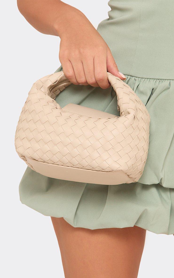 Cruise Woven Detail Shaped Grab Bag In Cream Faux Leather