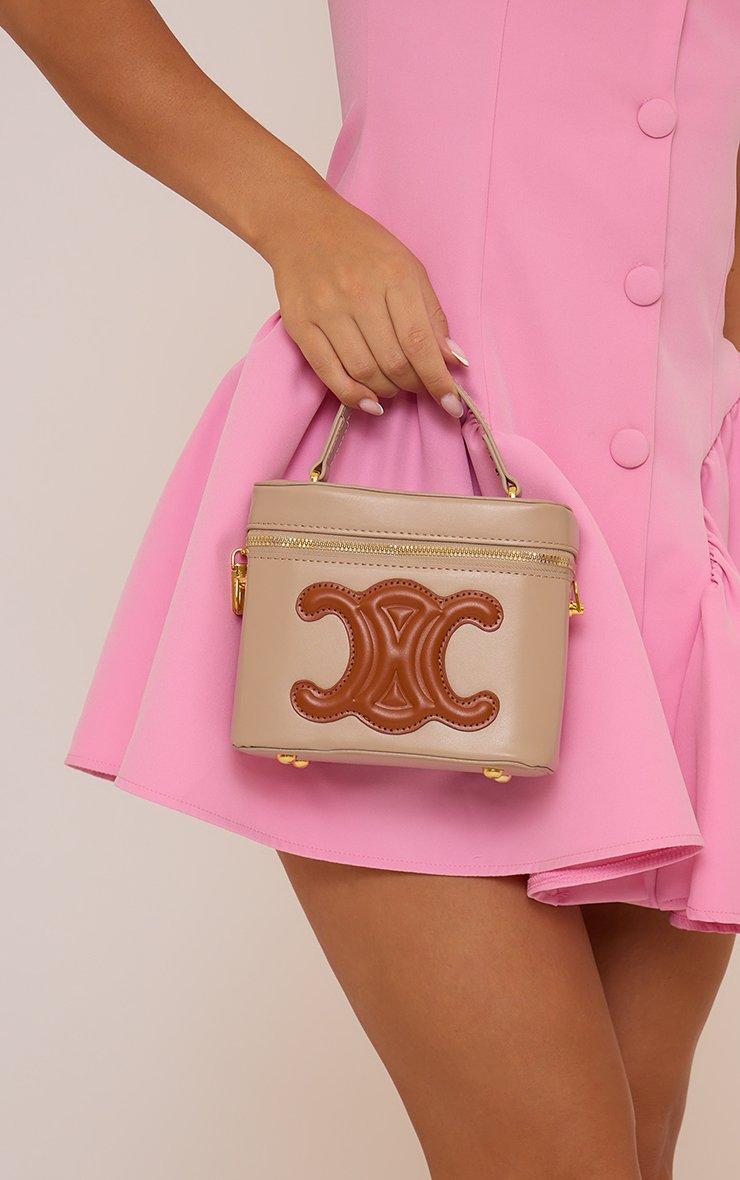 Nest Logo Detail Cross Body Vanity Bag In Tan Faux Suede