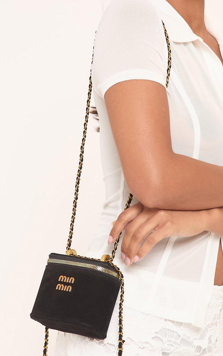 Dibz Woven Detail Zipped Vanity Bag In Black Faux Suede