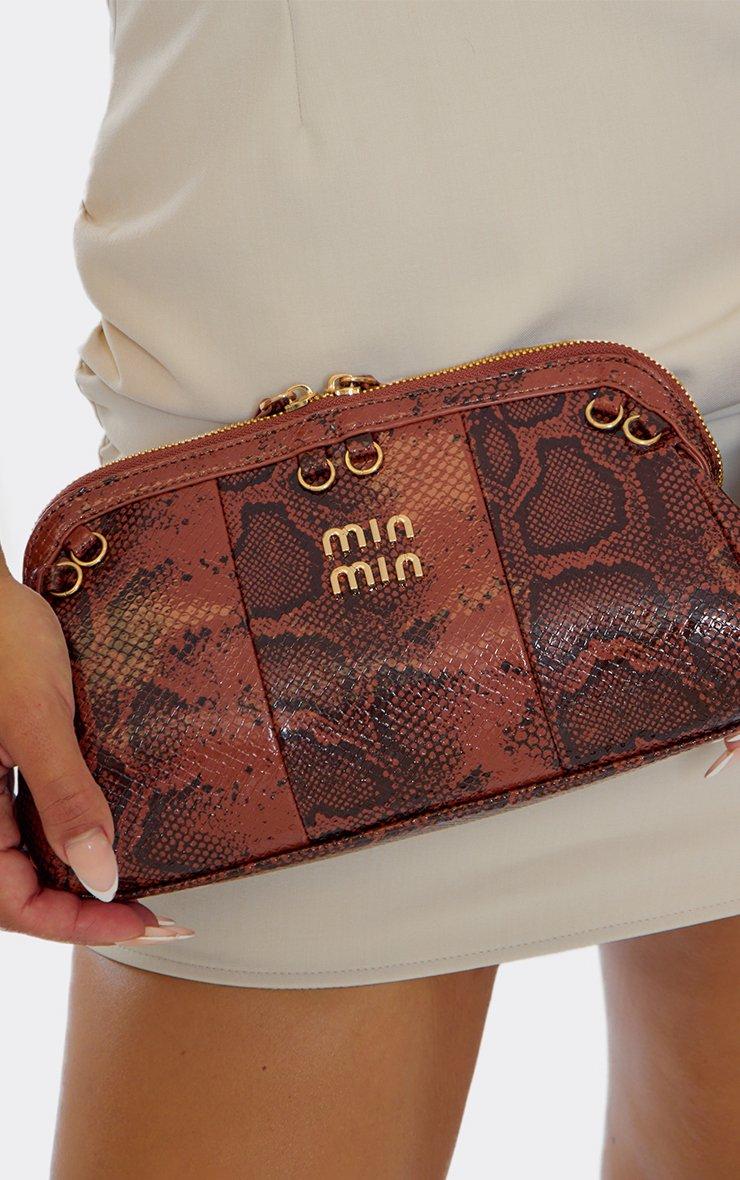 Mateo Logo Detail Shaped Clutch Bag In Brown Croc Print Faux Leather