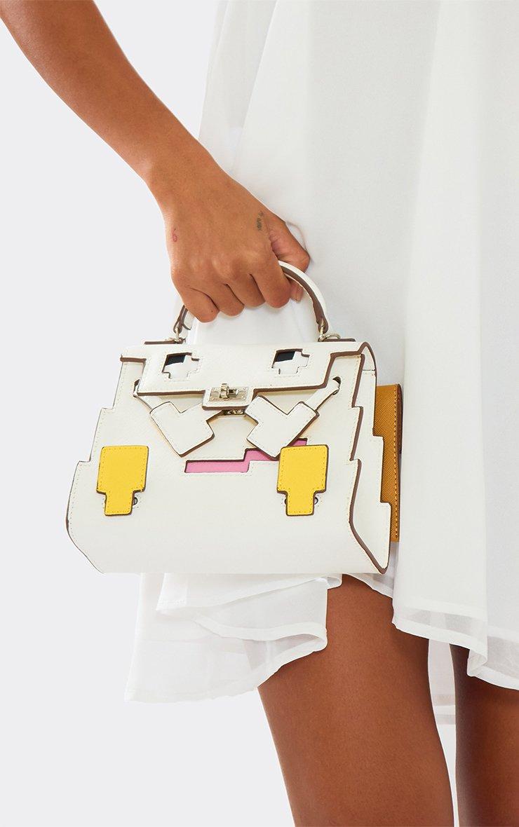 Juan Character Lock Detail Tote Bag In White Faux Leather
