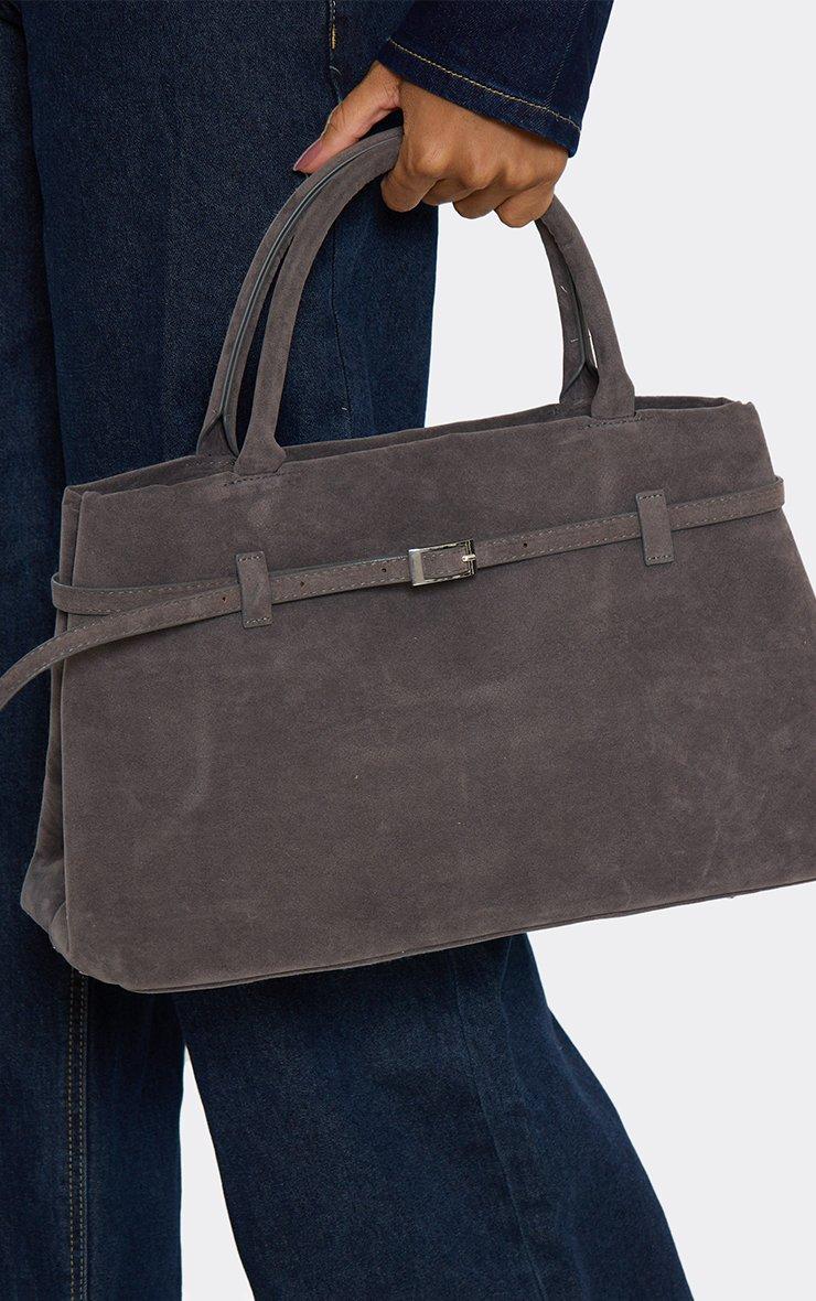 Joff Buckle Detail Shaped Tote Bag In Grey Faux Suede