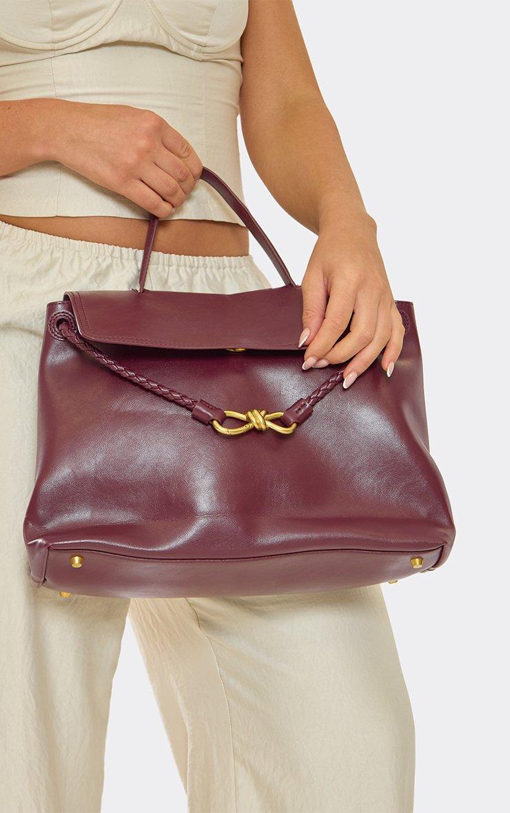 Ibiza Knotted Detail Shaped Shoulder Bag In Burgundy Woven Faux Leather