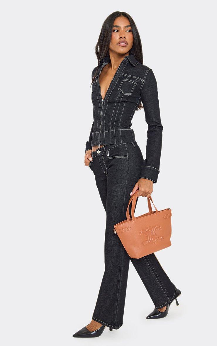 Electro Logo Detail Shaped Shoulder Bag In Black Denim