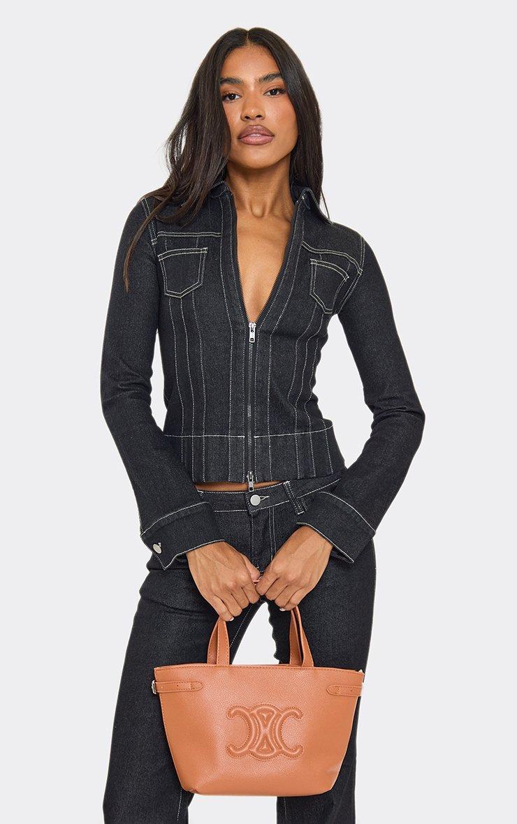 Electro Logo Detail Shaped Shoulder Bag In Brown Denim