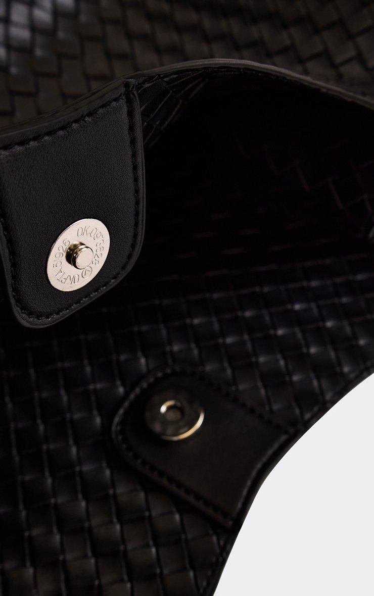 Maria Woven Detail Shaped Shoulder Bag In Black Faux Leather