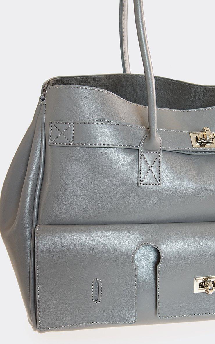 Joff Buckle Detail Shaped Tote Bag In Grey Faux Suede