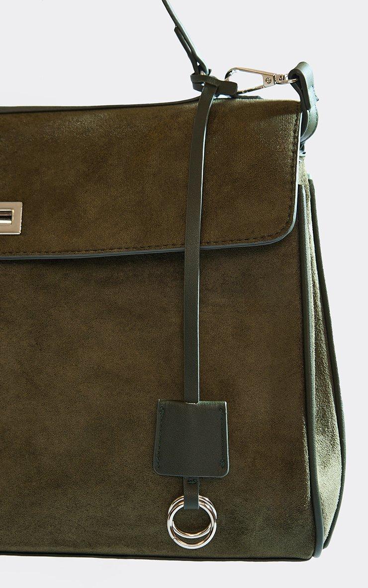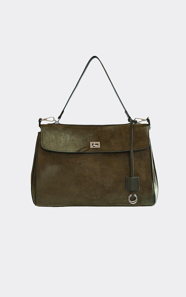 Bran Shaped Shoulder Bag In Khaki Faux Suede