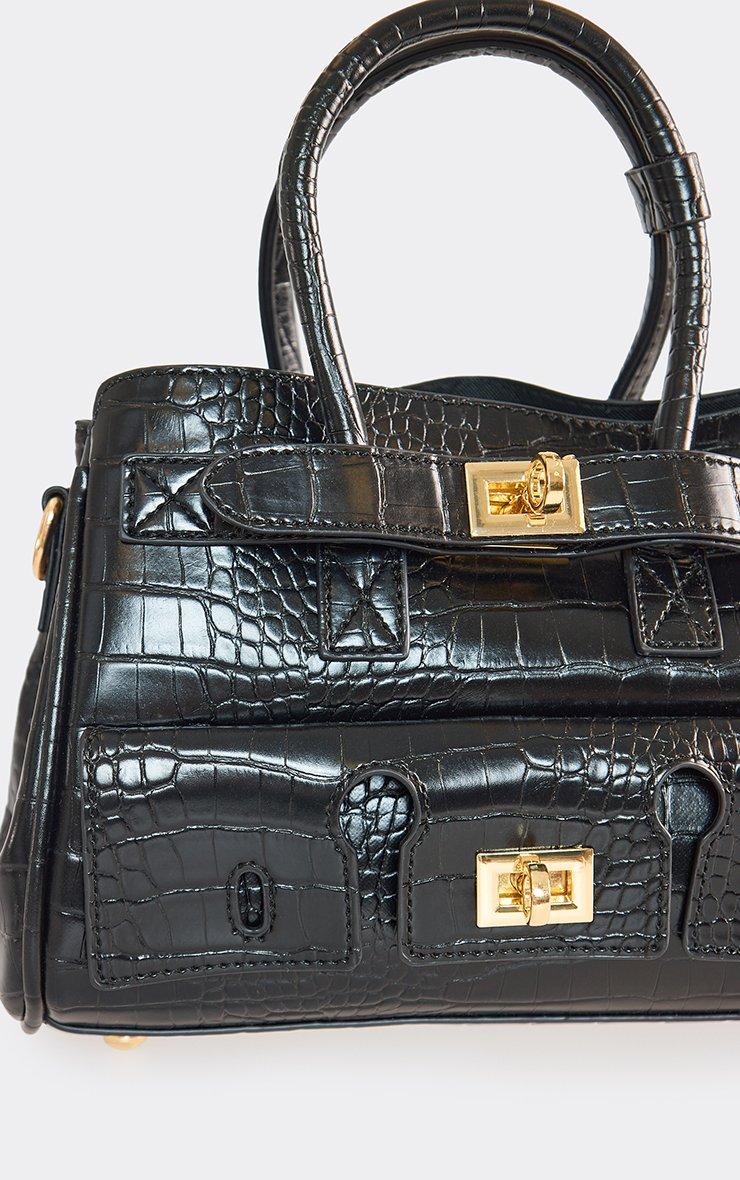 Store Studded Lock Detail Shaped Grab Bag In Black Faux Leather