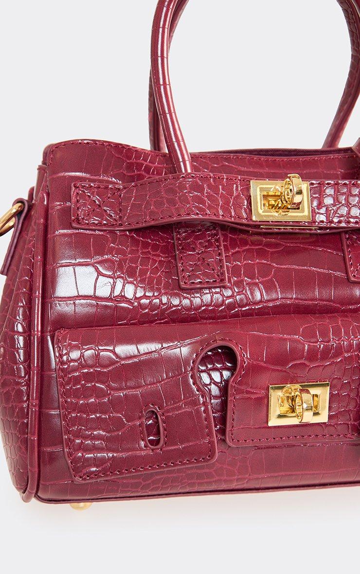 Berlin Knitted Detail Shaped Bag In Burgundy Faux Leather