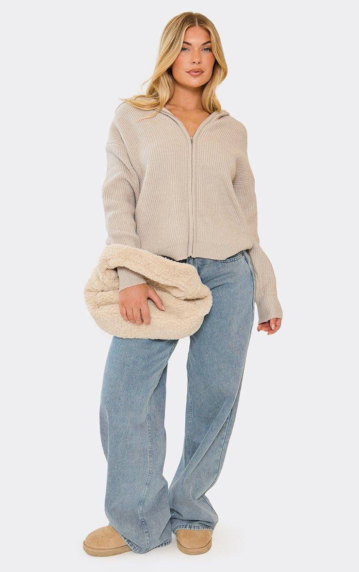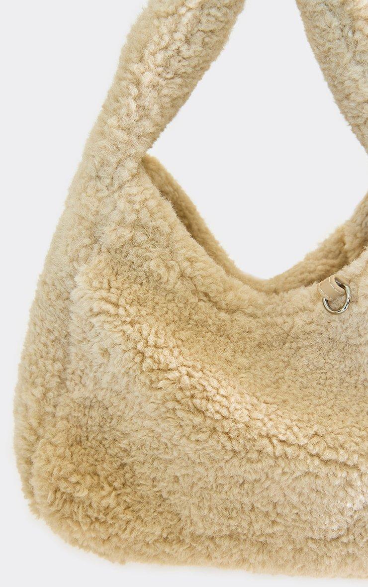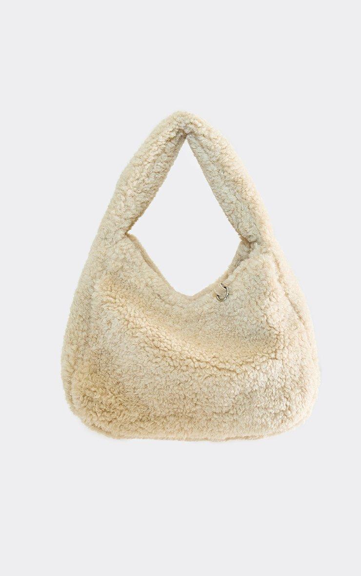 Icey Contrast Detail Shaped Bag In Cream Faux Fur