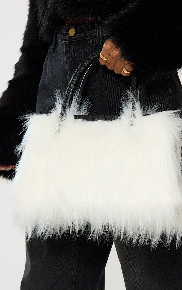 Bex Shaped Shoulder Bag In Cream Faux Fur