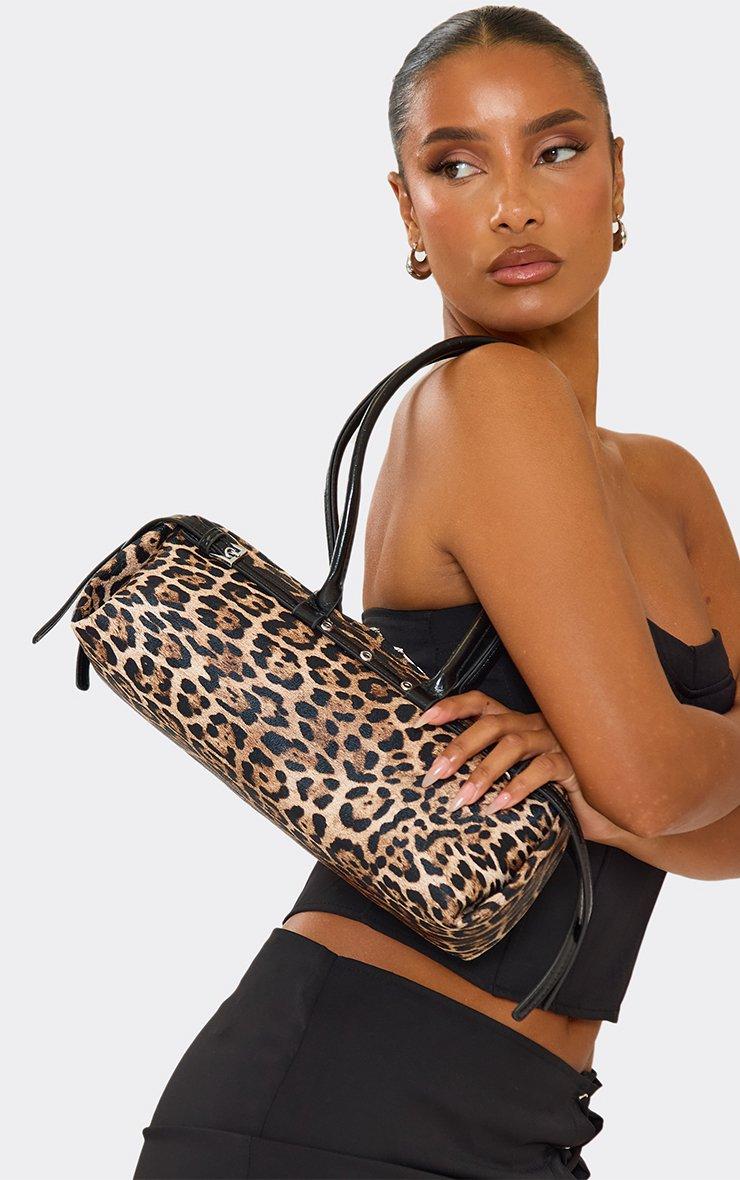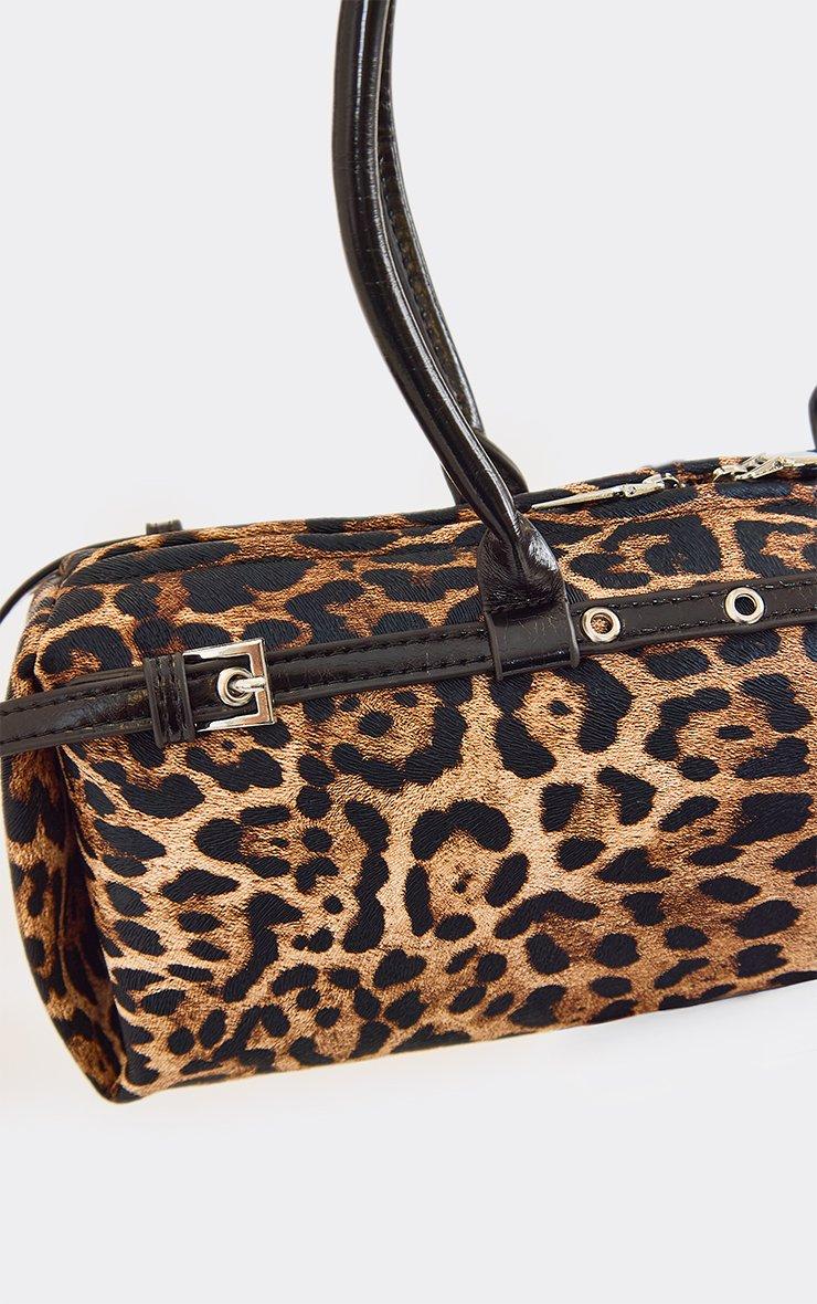 Poma Belt Detail Baguette Shaped Shoulder Bag In Leopard Print Faux Leather
