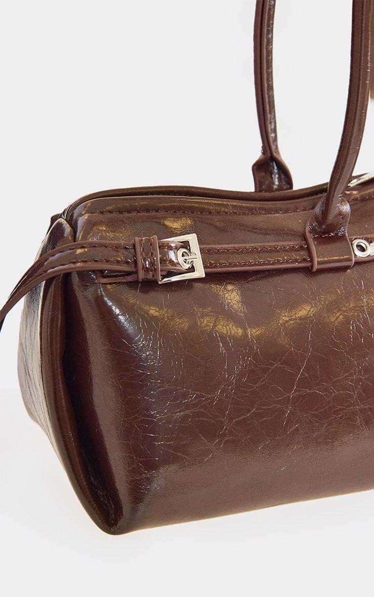 Poma Belt Detail Baguette Shaped Shoulder Bag In Brown Faux Leather