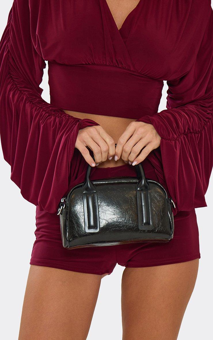 Dotz Cracked Detail Grab Bag In Black Faux Leather