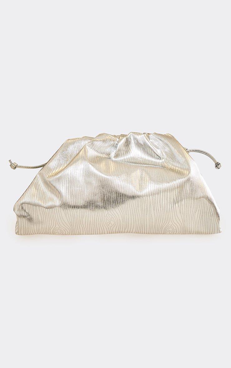 Symphony Textured Detail Shaped Clutch Bag In Silver Patent
