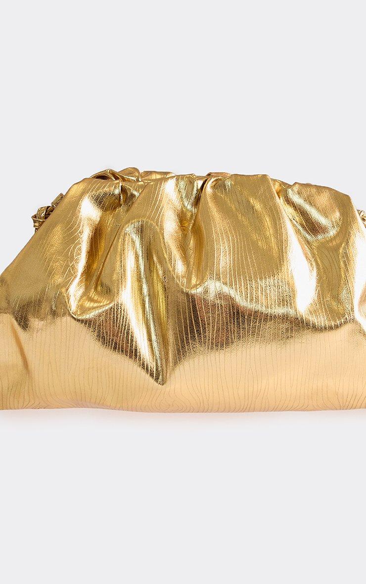 Evelyn Knotted Strap Ruched Detail Grab Bag In Gold Faux Leather