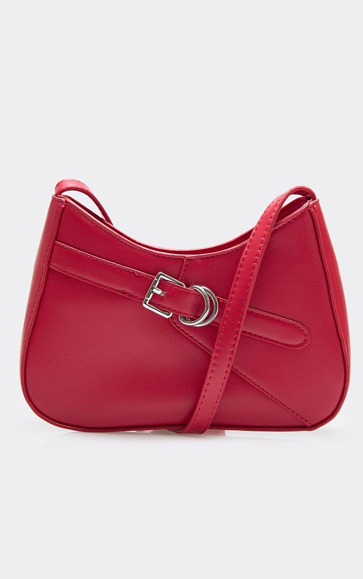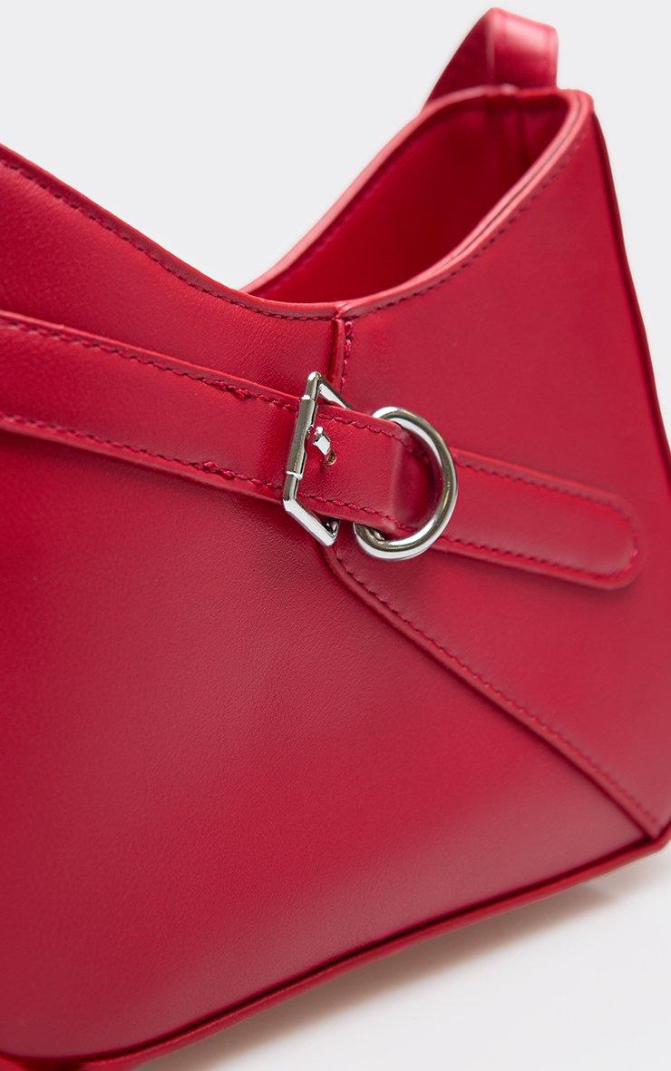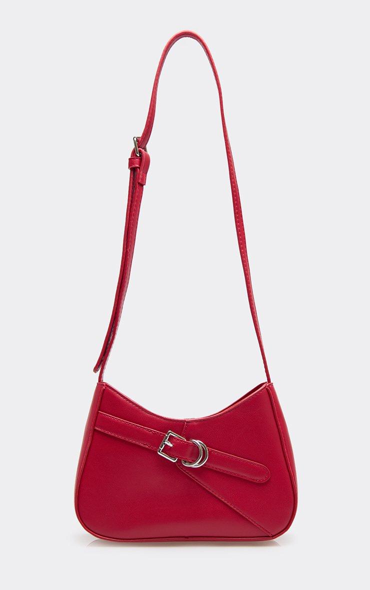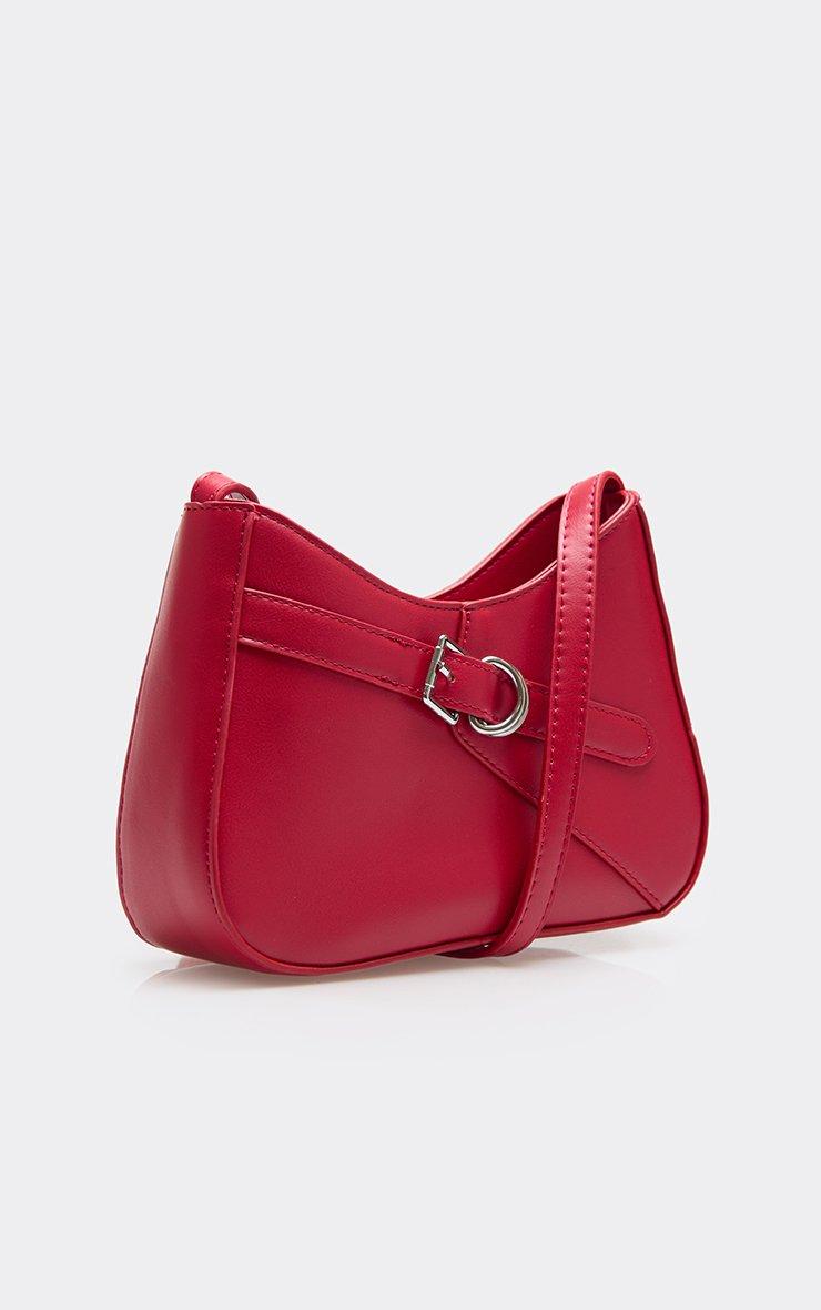 Melodies Bead Strap Detail Shaped Shoulder Bag In Red Faux Leather