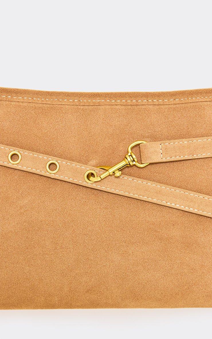 Trolli Belt Trim Detail Shoulder Bag In Taupe Faux Suede