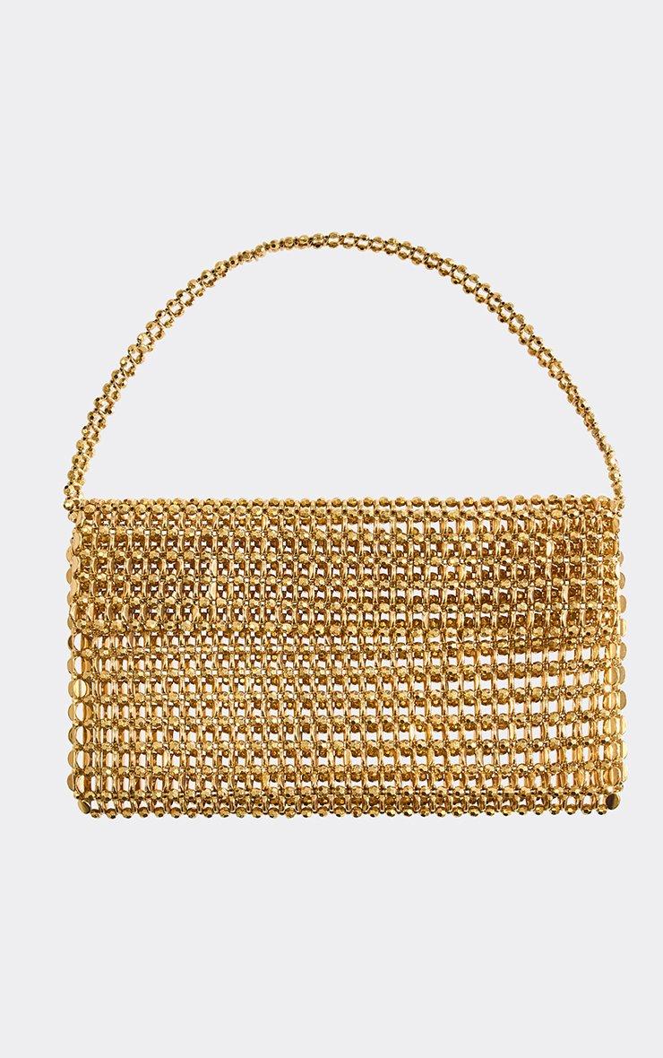 fever envelope style rectangle shaped shoulder bag in gold bead