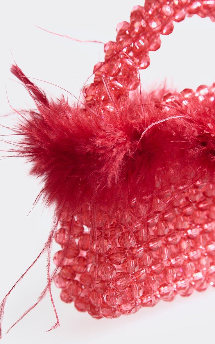 Melodies Bead Strap Detail Shaped Shoulder Bag In Red Faux Leather