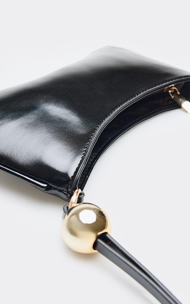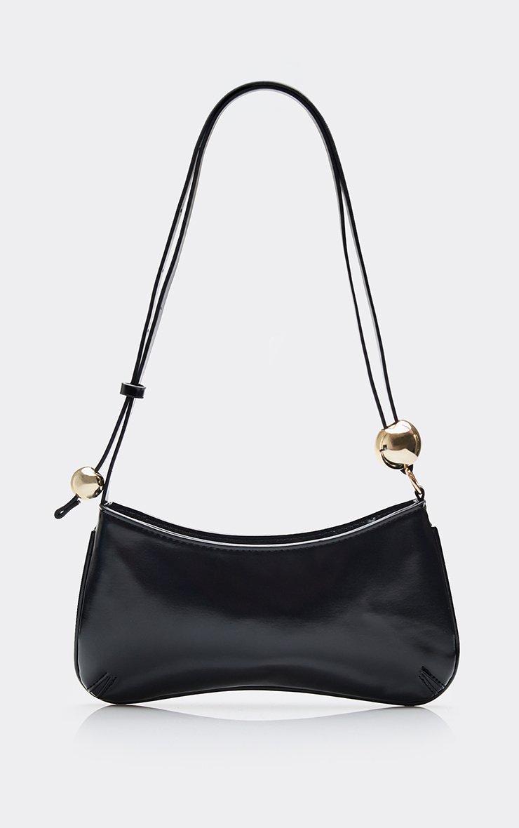 Melodies Bead Strap Detail Shaped Shoulder Bag In Black Faux Leather